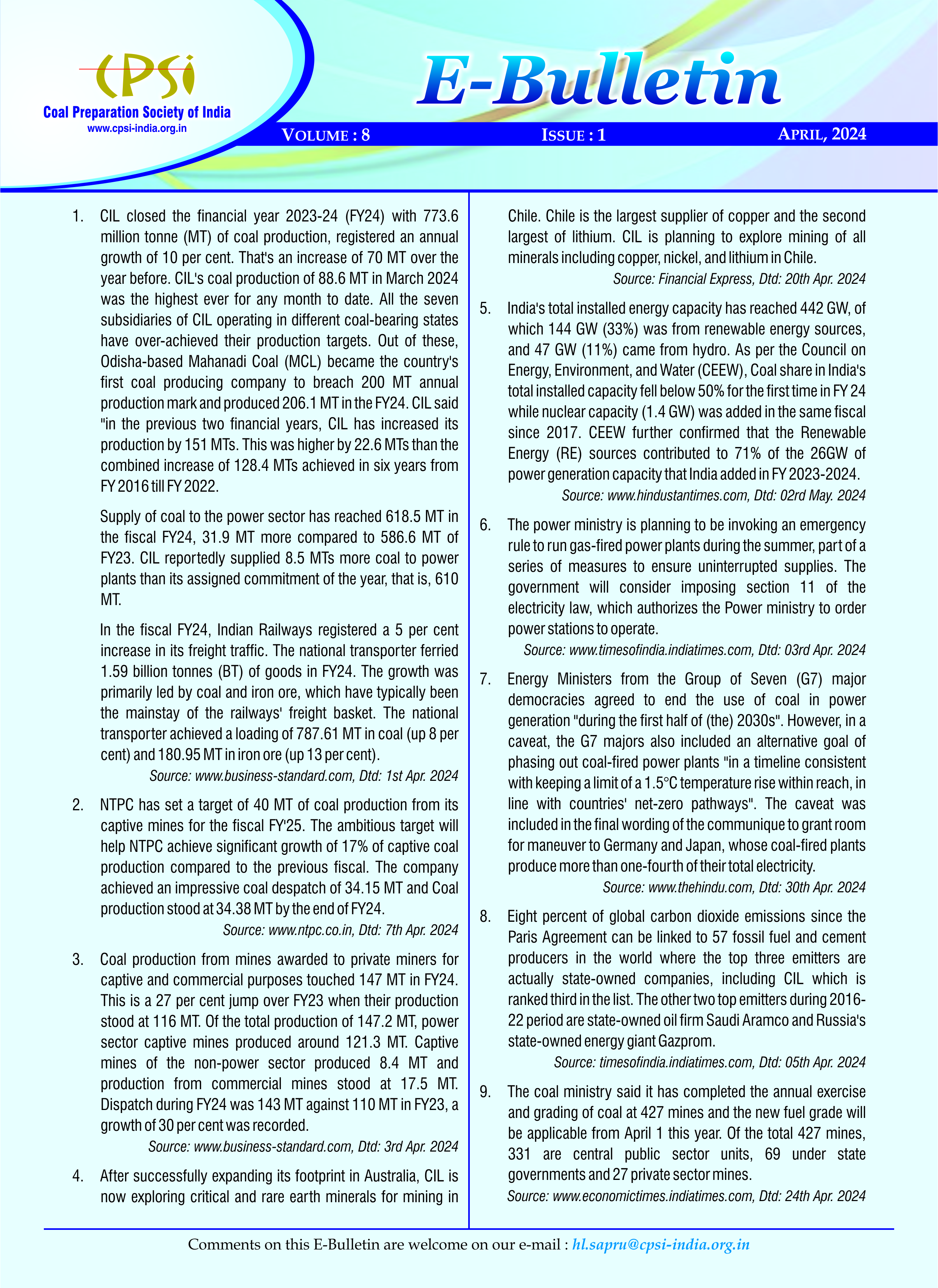 E-Bulletin - April, 2024
