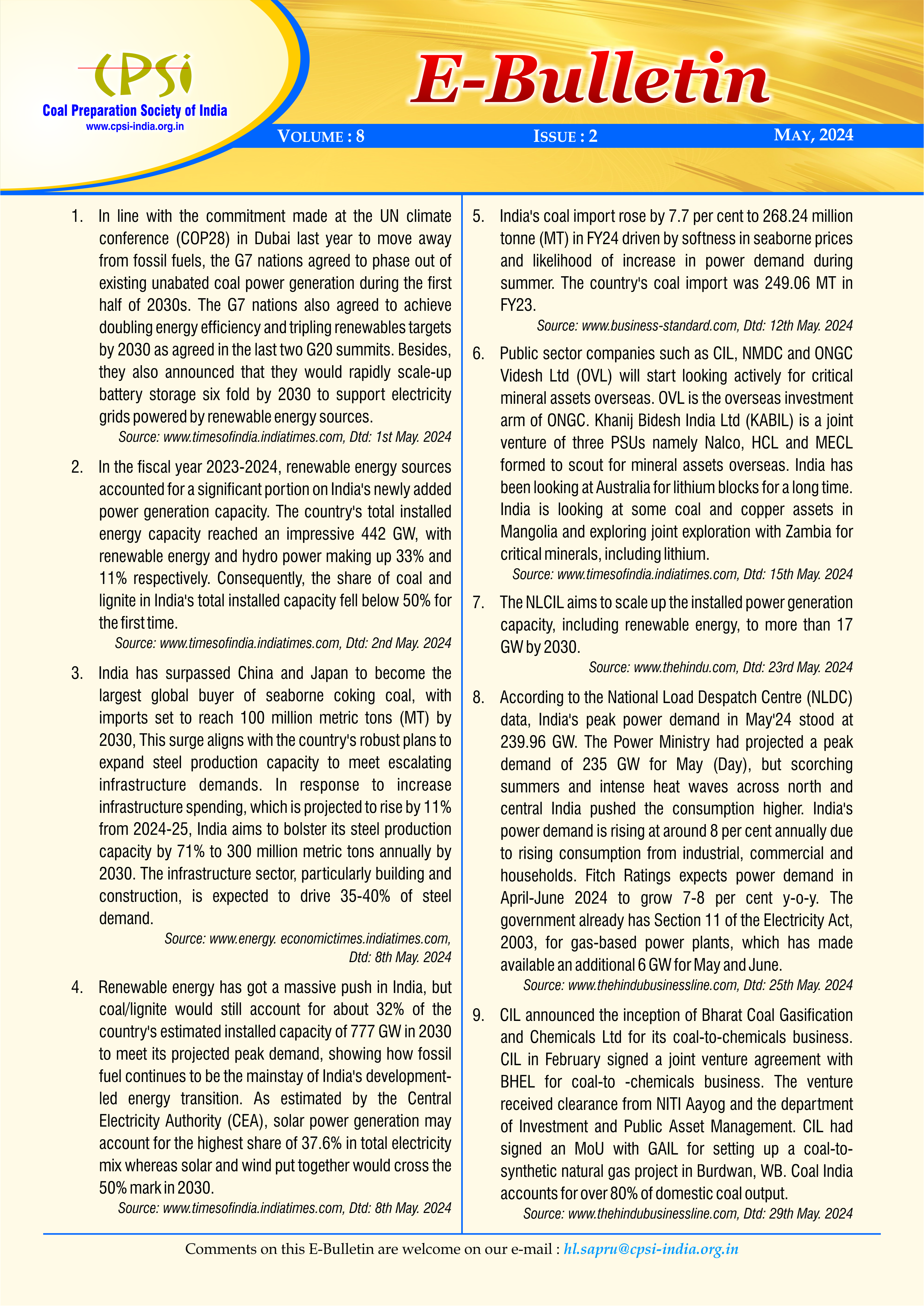 E-Bulletin - May, 2024