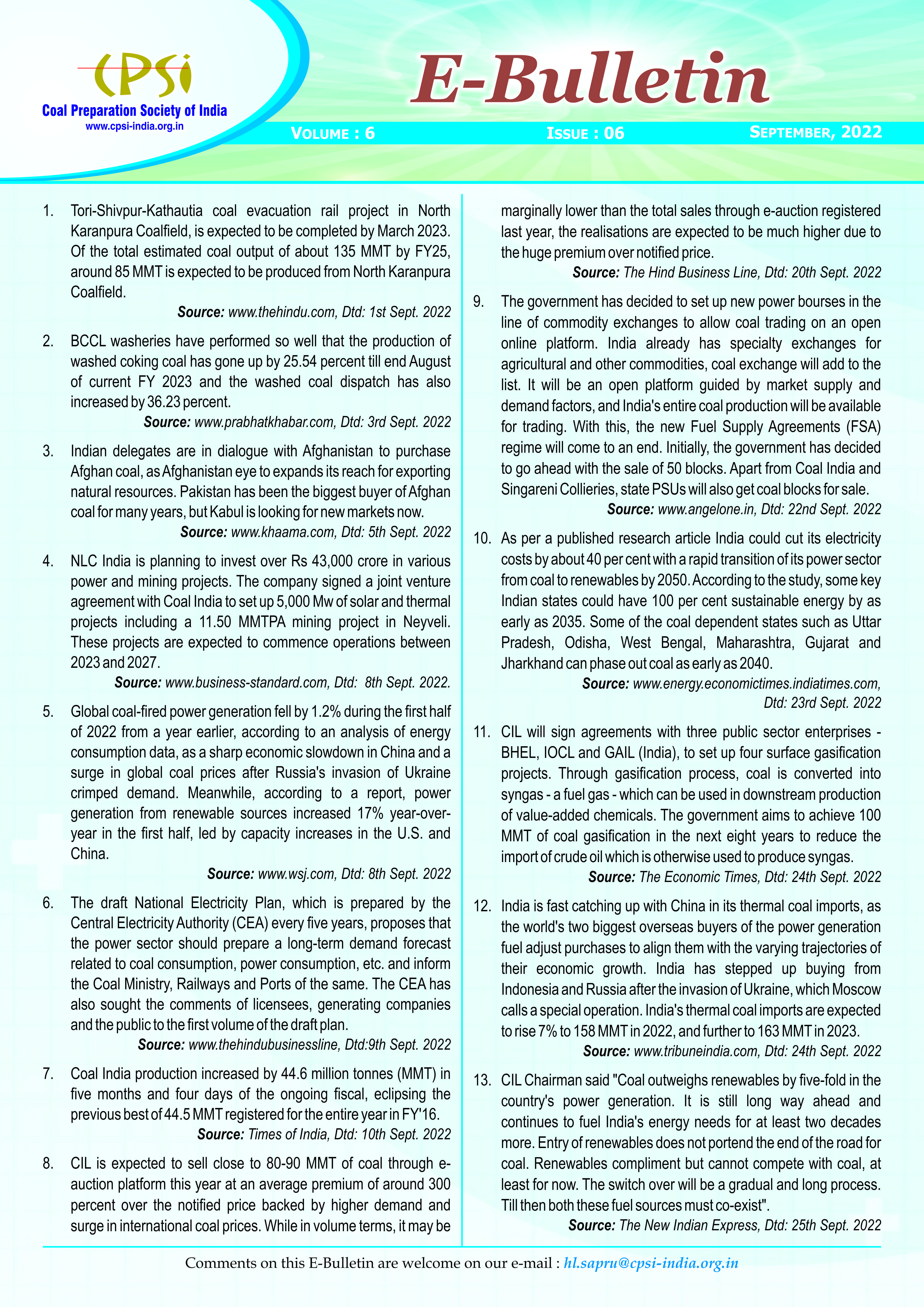 E-Bulletin - September, 2022